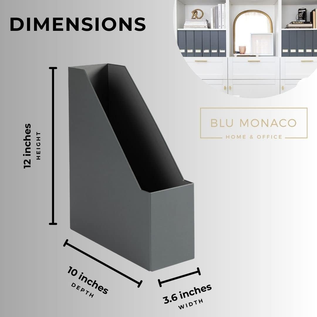 Keep your desktop or bookshelf clutter-free with this set of 6 magazine holders. Perfect for organizing your workspace or adding a decorative touch to your home, these magazine racks are a must-have for any organization enthusiast. Say goodbye to messy piles of paper and hello to a stylish and organized space with BLU MONACO.