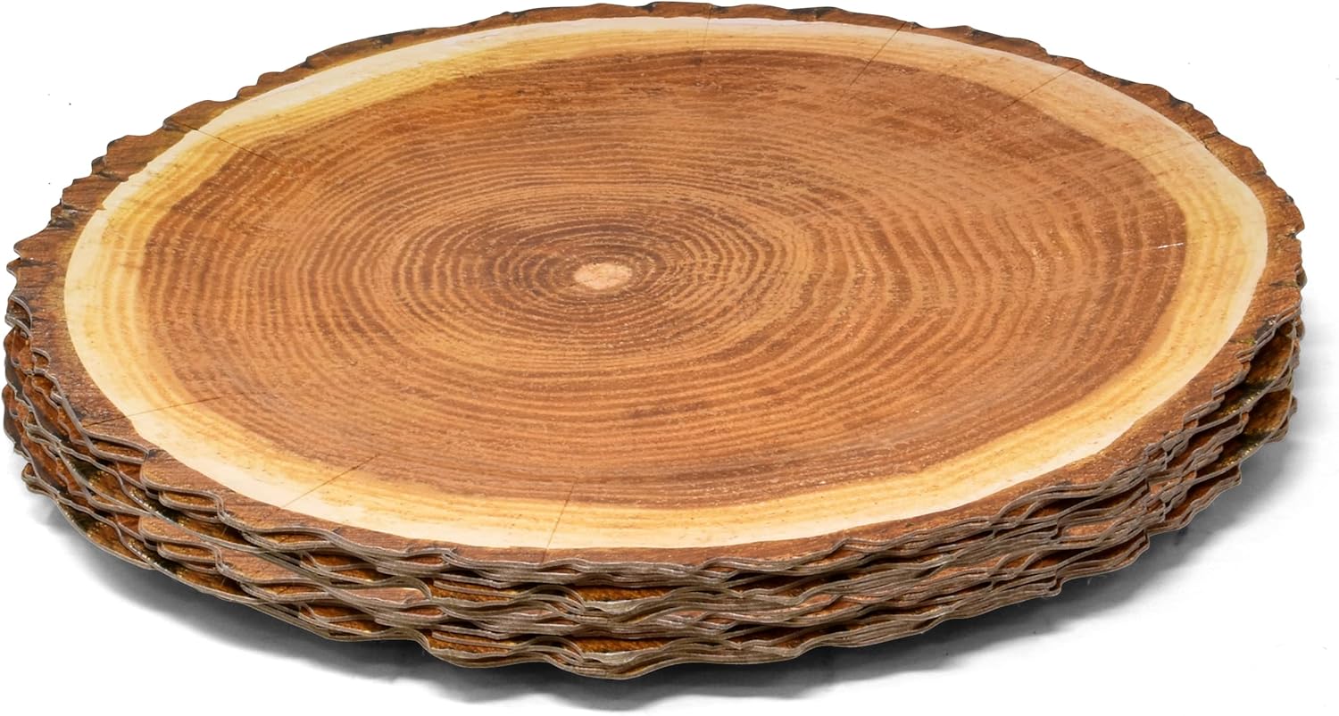 Gift Boutique 24 Disposable Wood Round Charger Plates 13″ Rustic Brown Wooden Slice Dinner Serving Tray Heavy Duty Paper Cardboard Platter Place Mats