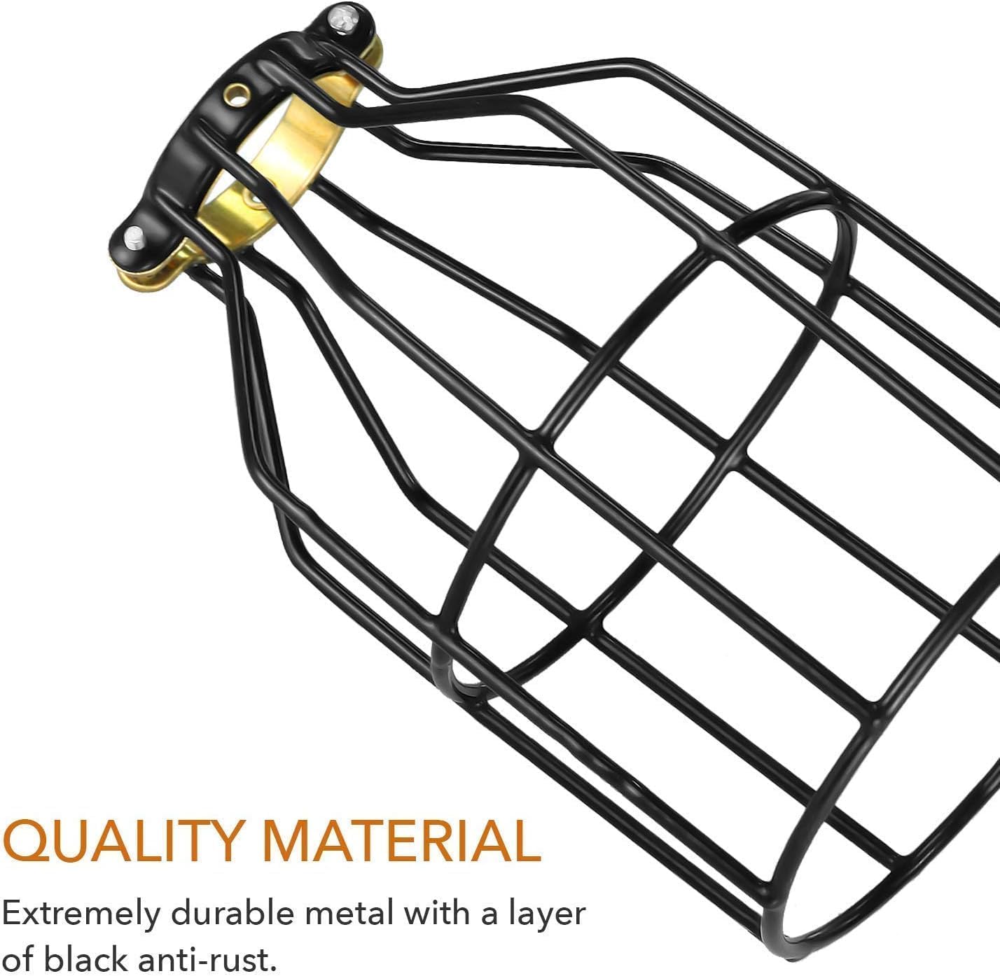 HealSmart Metal Industrial Adjustable Clamp Lamp Cage, Pendant String Light Shade for Lamp Holder, Vintage Farmhouse Light Fixture, 2 Pack Black
