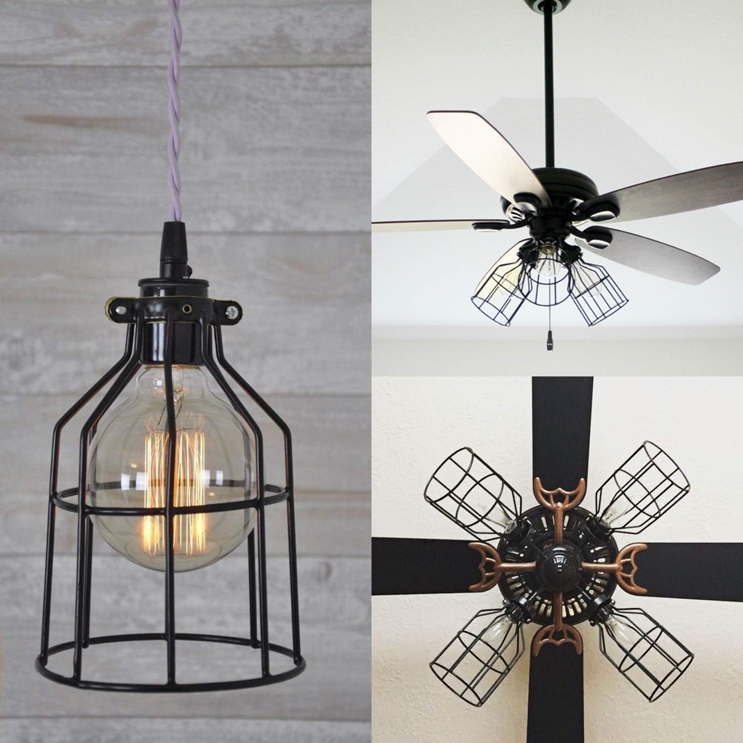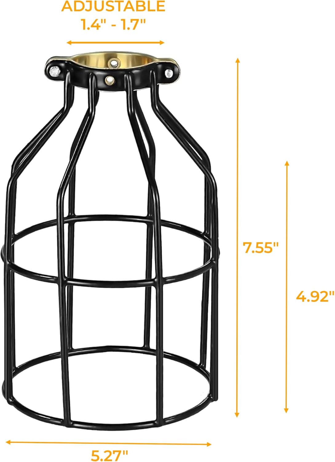 KastLite Metal Bulb Guard – Adjustable Lamp Base for Ceiling Fans – Pendant String Light Vintage Lamp Shade Cover – Wire Fixture Cage – Farmhouse Light Fixture – 2 Lamp Cages for Pendant String Lights