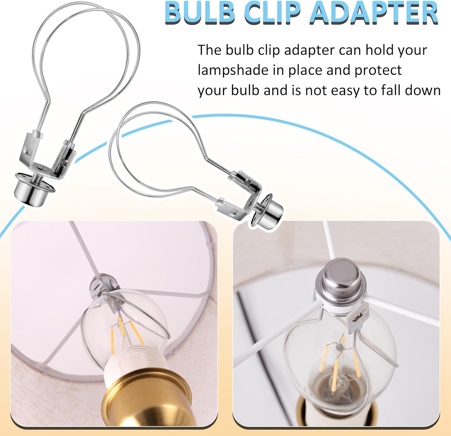 Enhance the look of your lamp with the Lamp Shade Light Bulb Clip Adapter, a convenient and versatile accessory for your lighting needs. This 2 pack includes clip on lampshade adapters that securely hold your lampshade in place, along with finials and lampshade levelers to ensure a perfect fit. The nickel finish adds a touch…