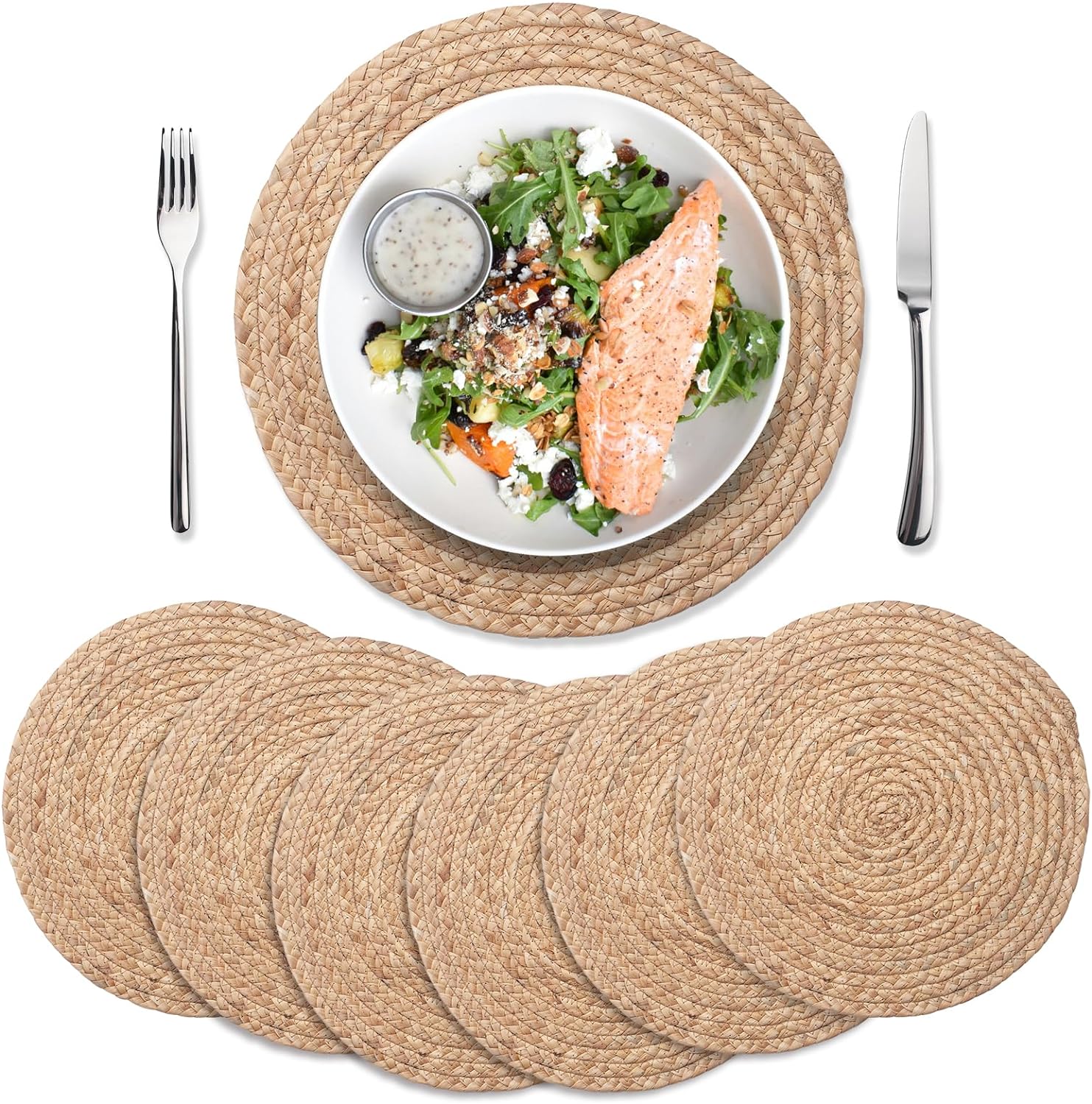 Round Placemats Set of 8, Table Mats Set of 8, Chargers for Dinner Plates, Place Mats Indoor Set of 8, Round Woven Placemats Set of 8, Farmhouse Placemats Set of 8, Wicker Placemats 13.4″