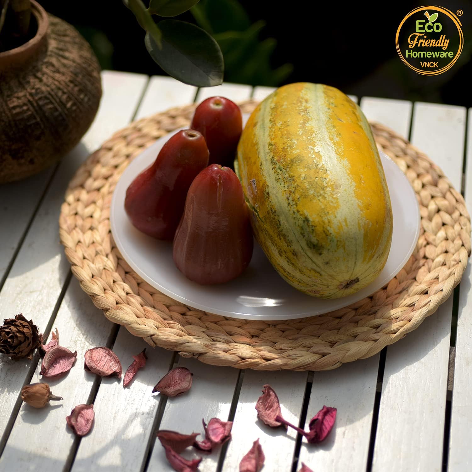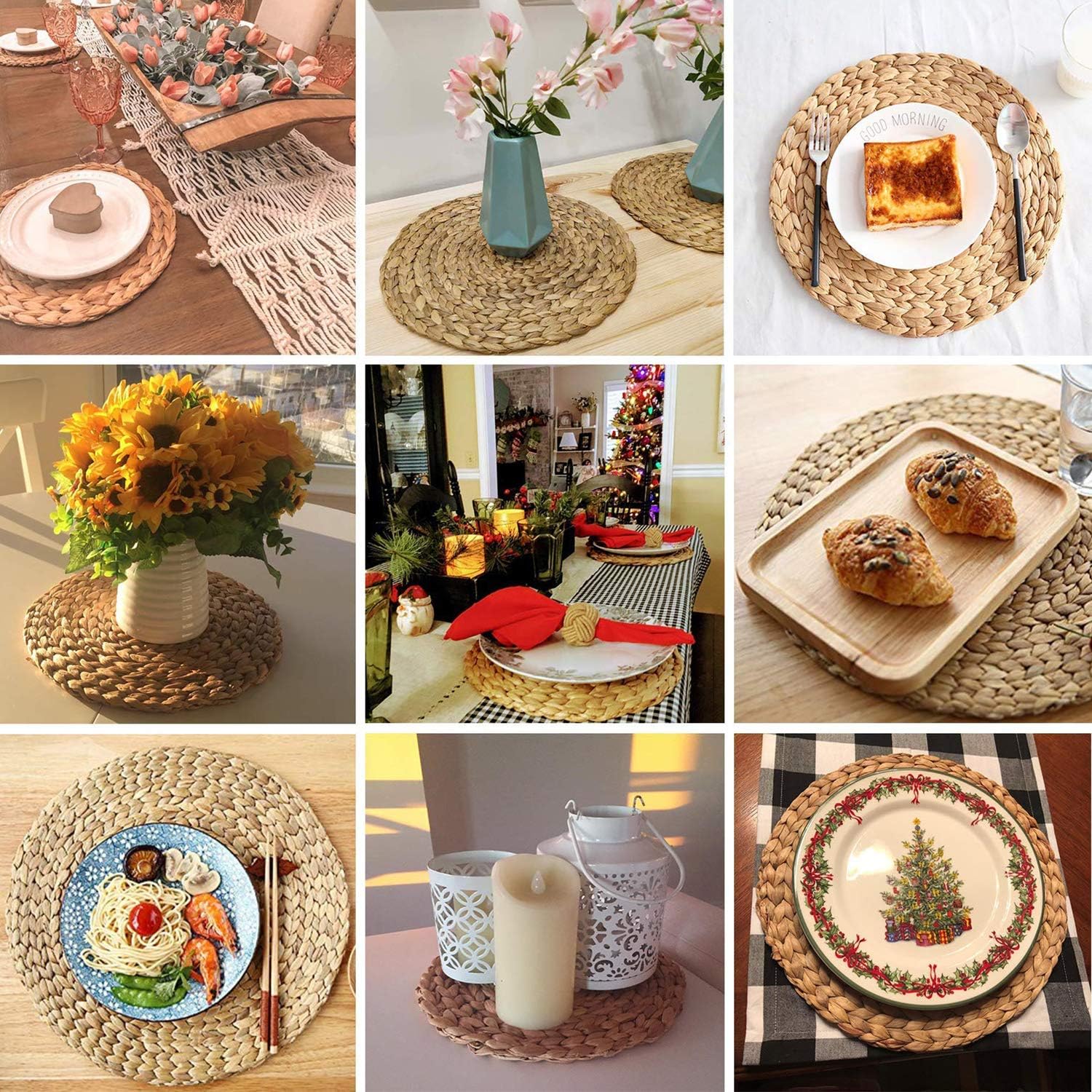 Crafted with high-quality wicker material, our Farmhouse Placemats Set of 8 are both practical and beautiful. Measuring 13.4 inches in diameter, these Wicker Placemats provide enough space for your dinner plates, glasses, and utensils.