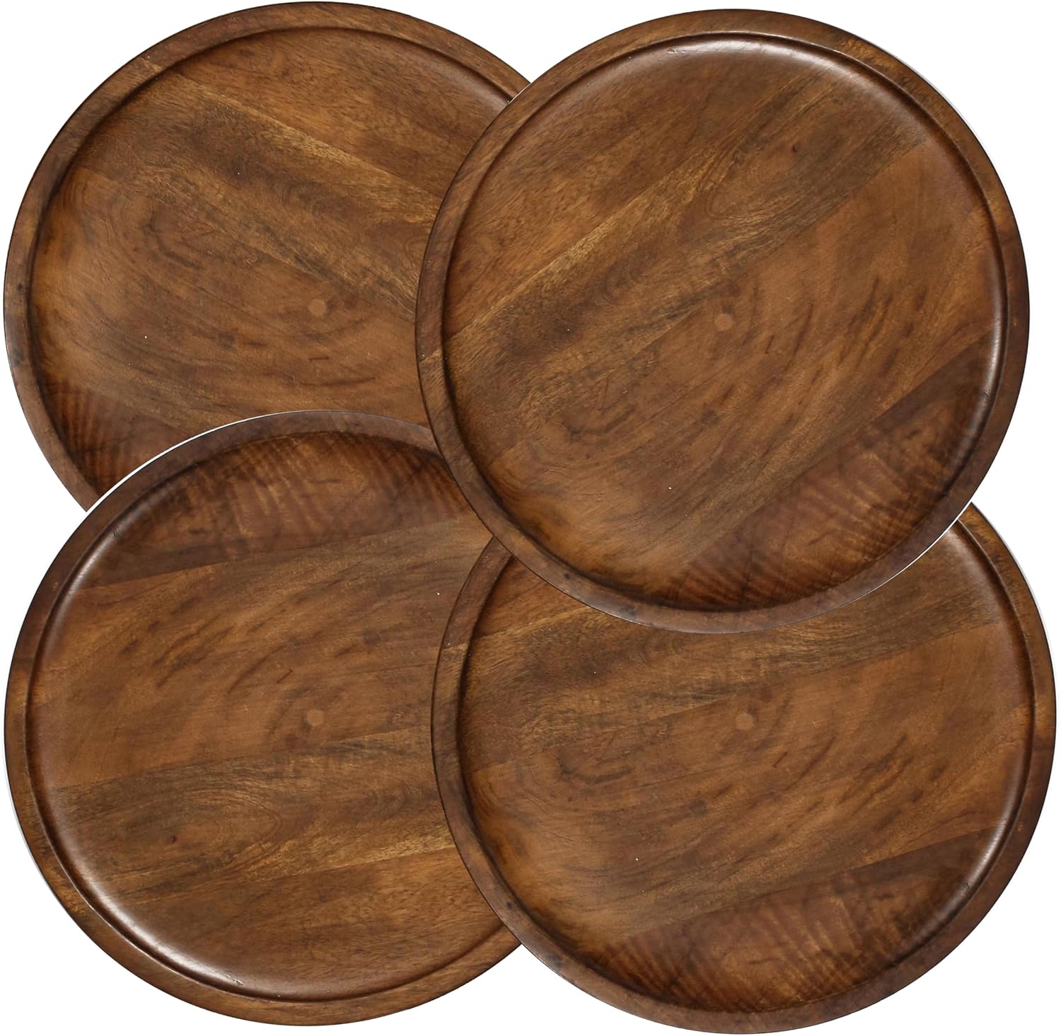 Wood Appetizer Plate, Wood Appetizer Plate Sets, Wood Chargers for Dinner Plates, Wood Placemats, Chargers for Dinner Plates, 11 Inch Wood Appetizer Plate – 4 Pack – Walnut Brown